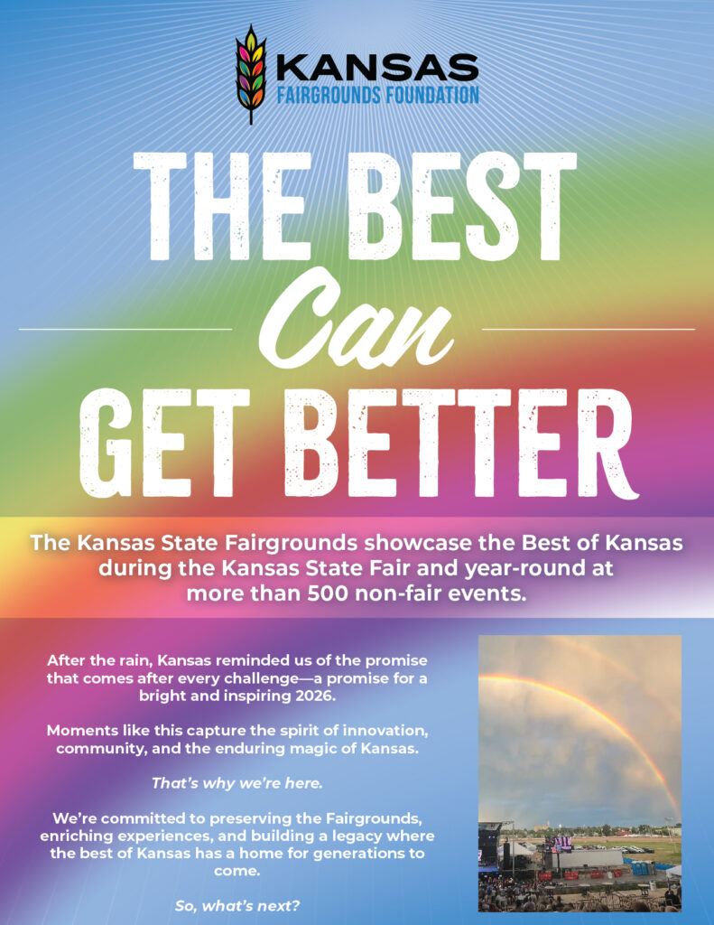 As 2025 draws to a close, we reflect on a year full of progress, promise, and innovation at the Kansas State Fairgrounds. Guided by the spirit of, “Today’s history is yesterday’s innovation. Today’s innovation will be tomorrow’s history,” we invite you to be part of the transformation shaping both our legacy and our future.