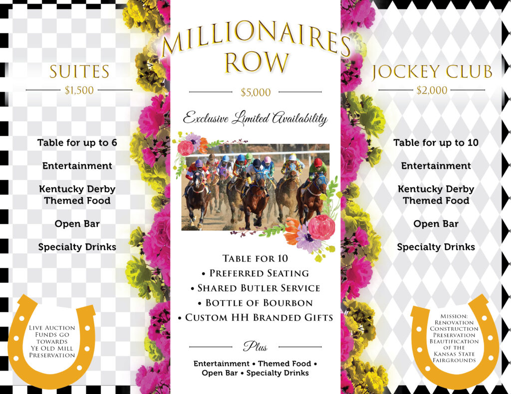 Every ticket, sponsorship, and auction bid directly supports important improvements to the Kansas State Fairgrounds—helping ensure the grounds continue to serve as a vibrant gathering place for the community for generations to come. Funds from the Live Auction will be going towards the Ye Old Mill Preservation.