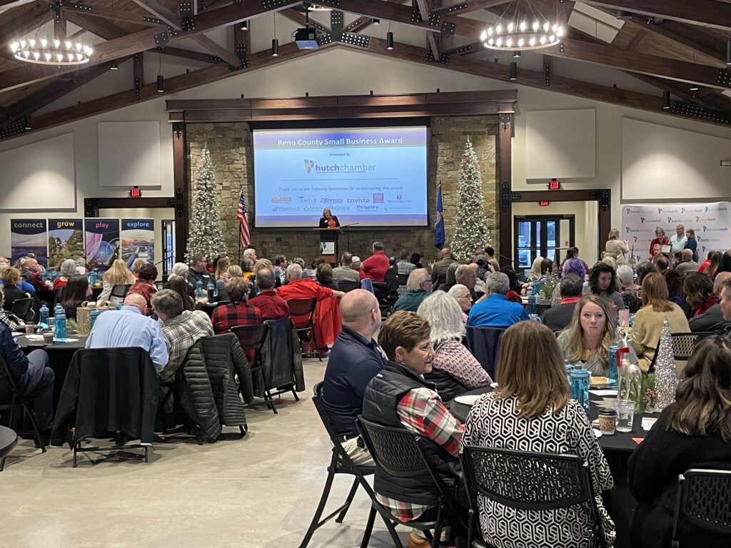 As 100 of Hutchinson’s business leaders gathered, Chamber President Debra Teufel spoke briefly about business expansions in the city meaning more jobs and economic development for Hutchinson. Matt Leary, CEO of the Hutchinson Clinic spoke about people from as far away as Oklahoma and throughout western Kansas driving to Hutchinson to seek healthcare. And, others spoke of good things happening in the Salt City.